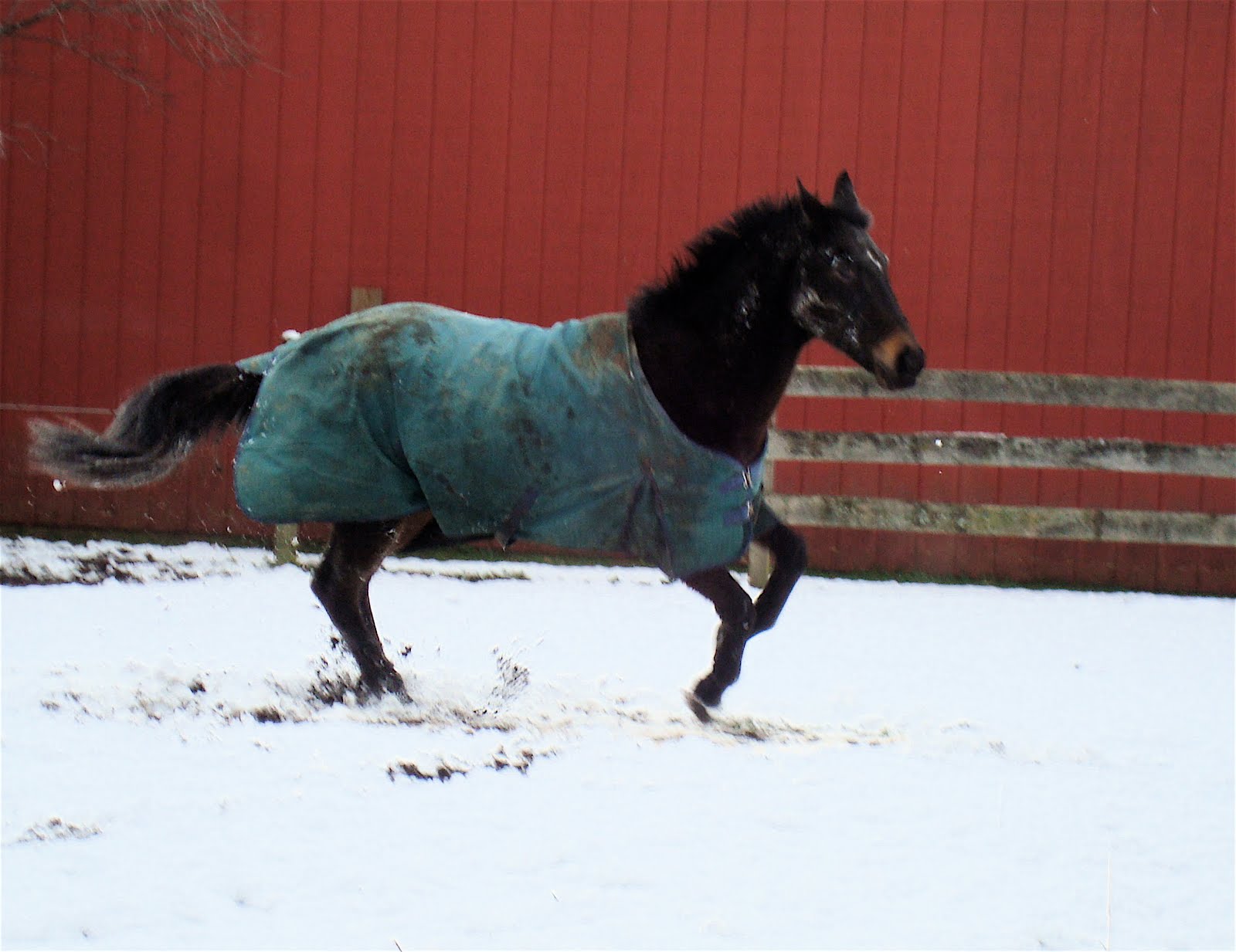 Of all the horses, Winnie is the one that really likes to roll in the snow.