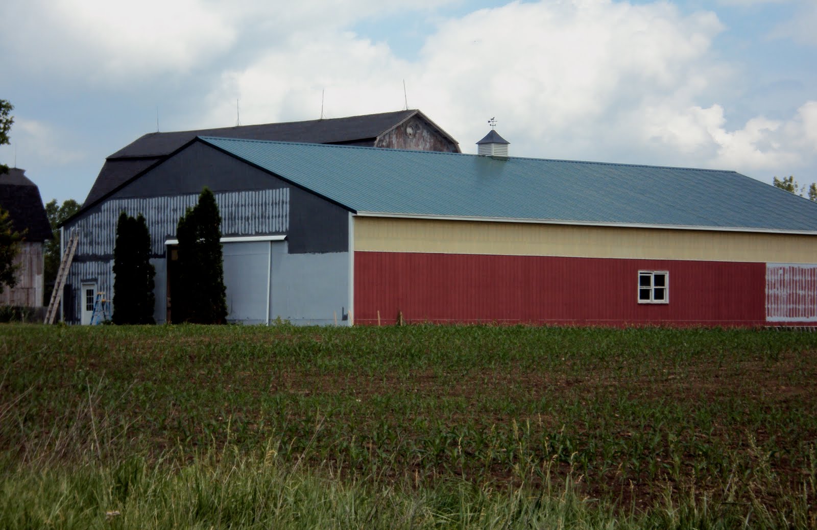 The barn is looking great, but I'm still partial to your red barn. Gun metal grey just does't have the same pastoral look as beautiful barn red :)