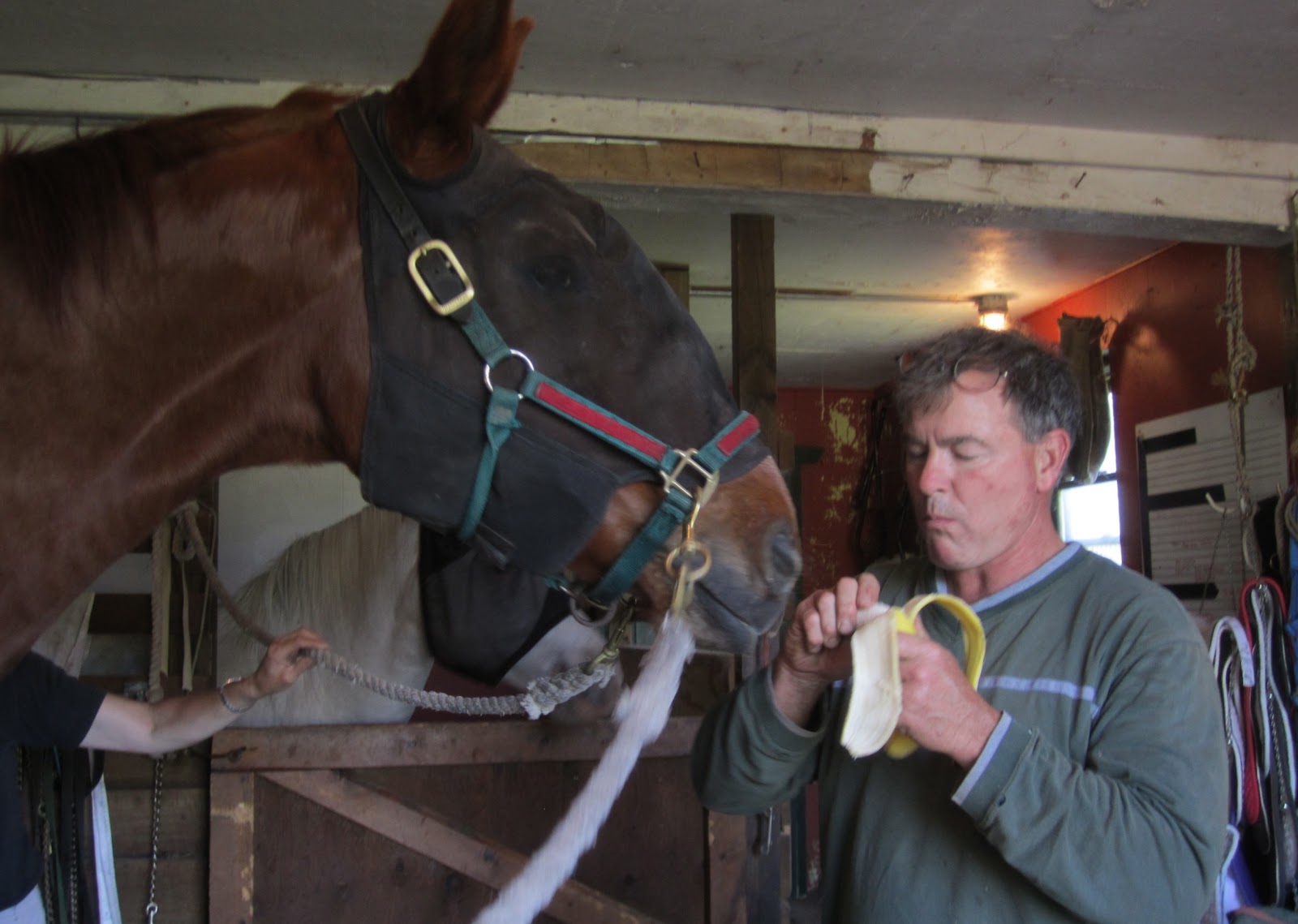I'll have to try bananas on the horses next door. Mustafa's a good boy.