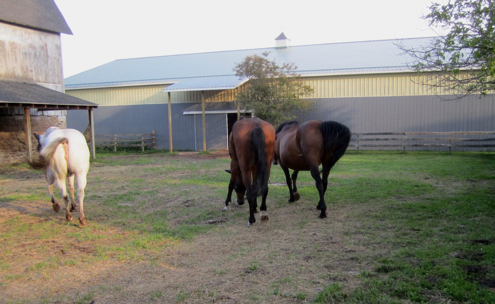 Was out in the barn before 7 as I had a lot to do before 10. Above is a run-in that is next to the horses stalls. It is open on both ends and the fan is in that section. All four horses can be found in there when it gets hot and buggy. A little primitive as the barn is over 100 years old, but it has character.