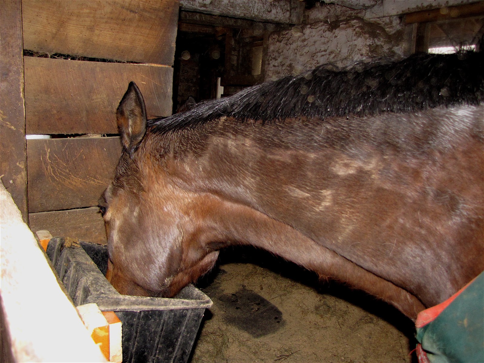 Abbe was not smart enough to go under the shed roof or in a run-in so I had to take off her drenched sheet and put on another blanket.