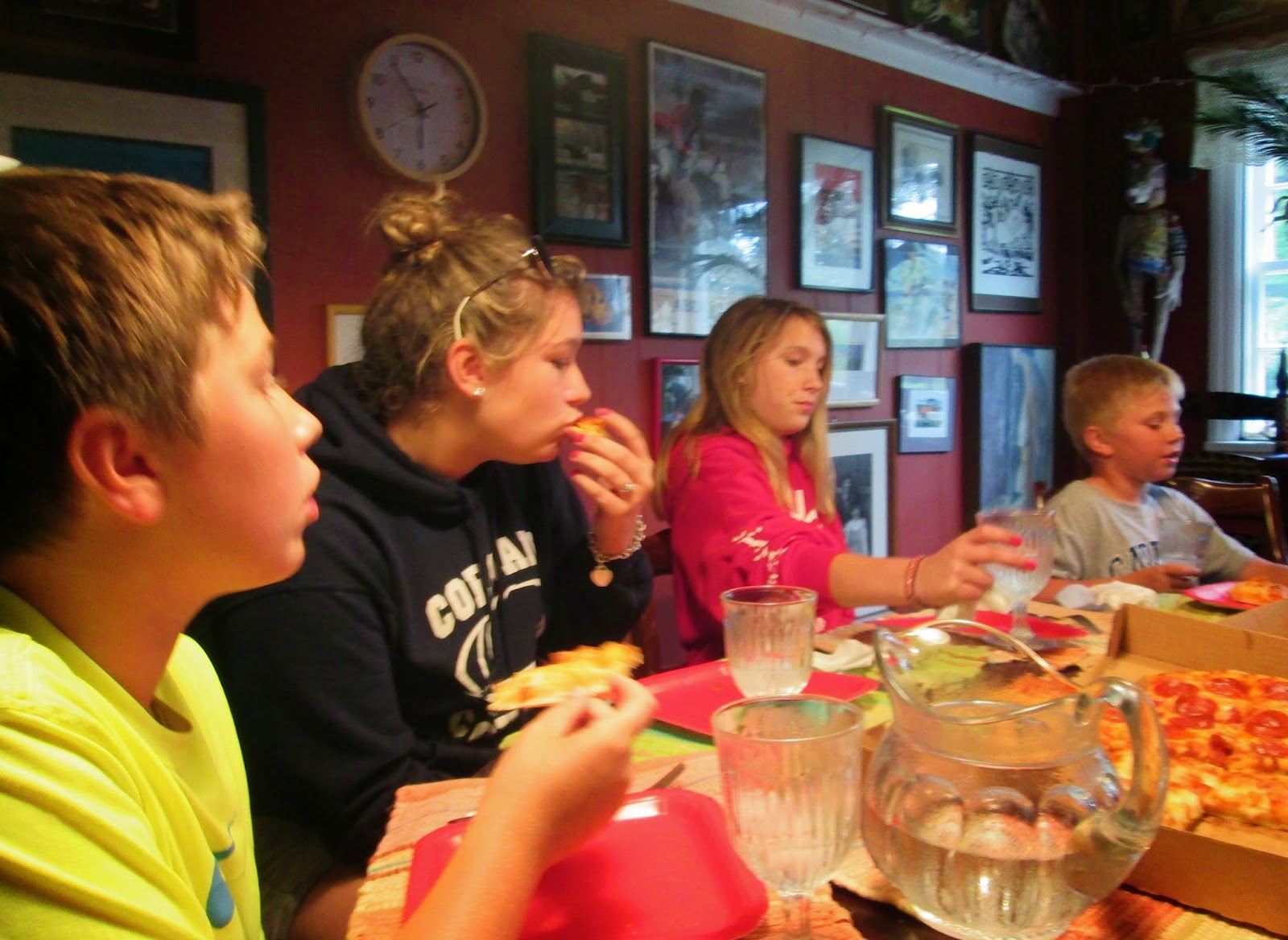 Home a little before 5 and ordered (by request) a couple of pizzas from Ralph and Rosie's. Tomorrow they all leave for Atlantic City so this was our last meal together.