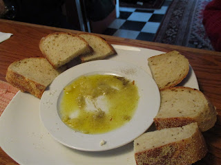 with olive oil/a tiny splash of balsamic vinegar/pepper/Romano cheese. We happened to have some roasted red peppers and hard boiled eggs in the frig so we turned it in to an "old country" lunch.
