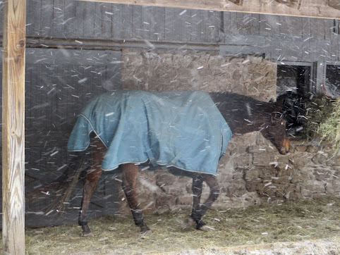 They were very happy to go in. Karen turned them out for a short time while she cleaned her stalls (before their evening feed). Tomorrow it will be between -10 and - 20 and I intend to keep them in most of the day.