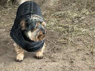 I started on dinner when I got back to the farm and put Buddy and Rebel in a little early again....with some bran mash mixed in with the grain/beet pulp. Just don't like this crazy weather.