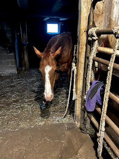 I took a break and then went back out to soak and wrap him. Had left the grooming room door open while I went to the other barn and when I got back each sweet boy was in a stall! That was handy. They must have thought it was going to be a spa day.