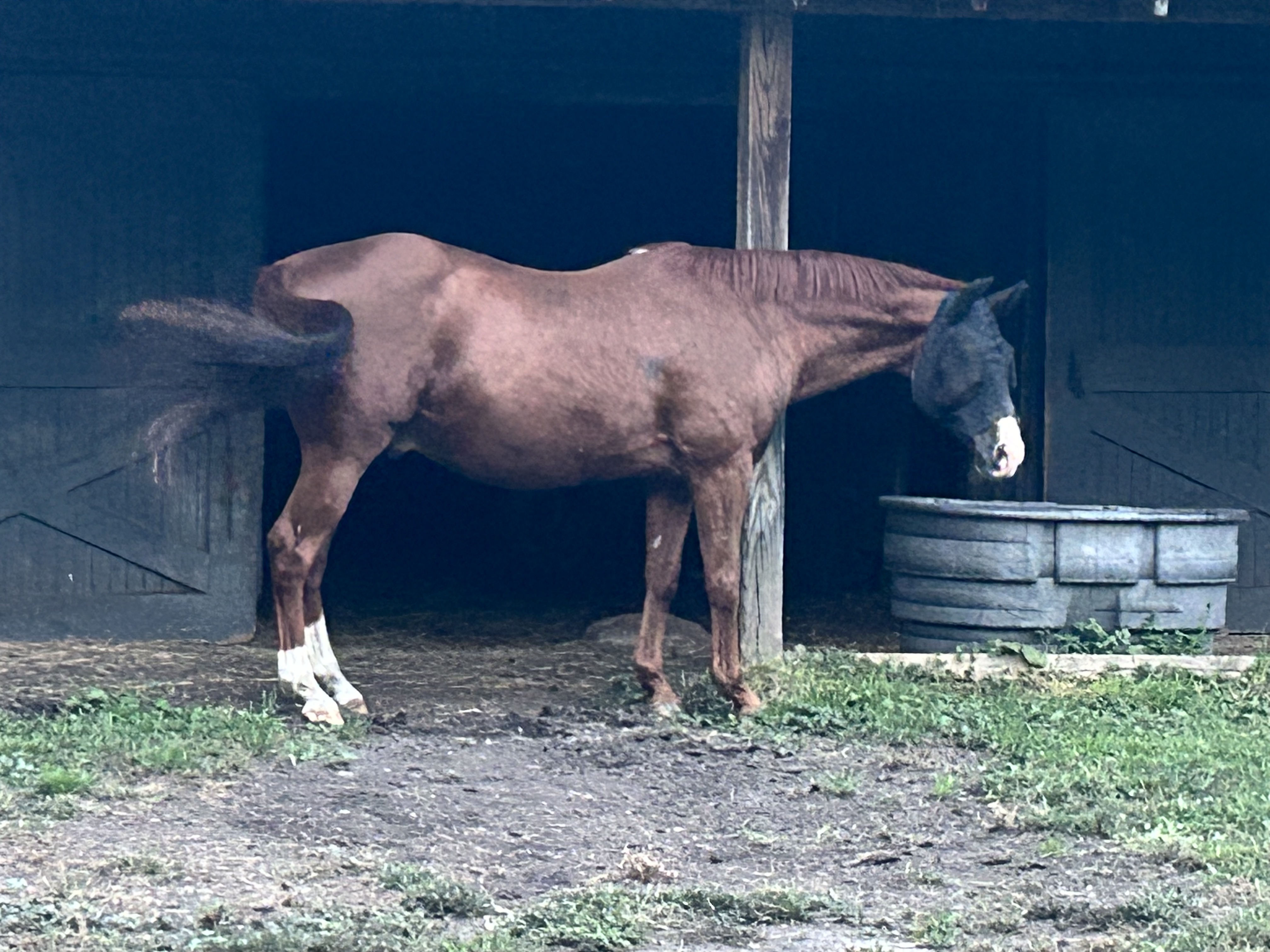 Rebel was good this morning. He got his boot off in the stall last night and went out bare today.